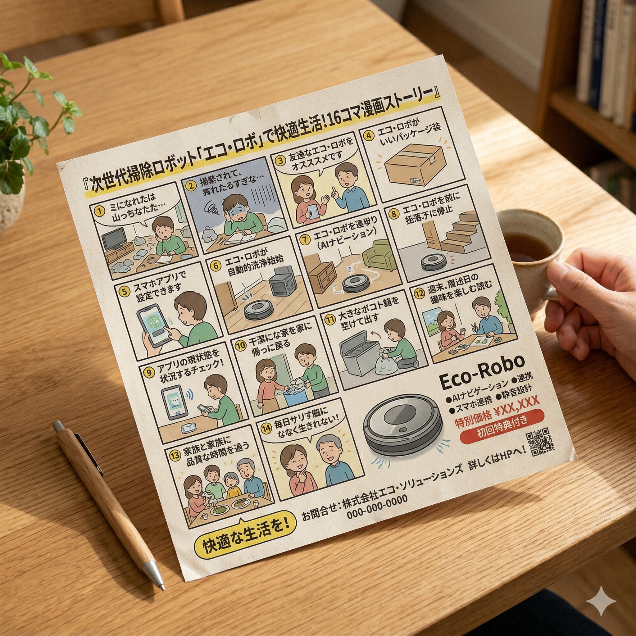 チラシに漫画を埋め込む。言葉では分かりにくいものを、漫画ストーリーで説明。来店率・問い合わせ率の向上に。
