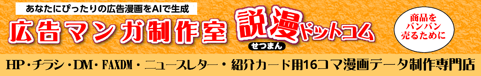 SNS・ホームページ・チラシで使える16コマ漫画と1分リール動画をセットで制作。AIでシナリオを作って、プロが仕上げる。22年の漫画制作実績を持つ説漫ドットコムの新サービスです。